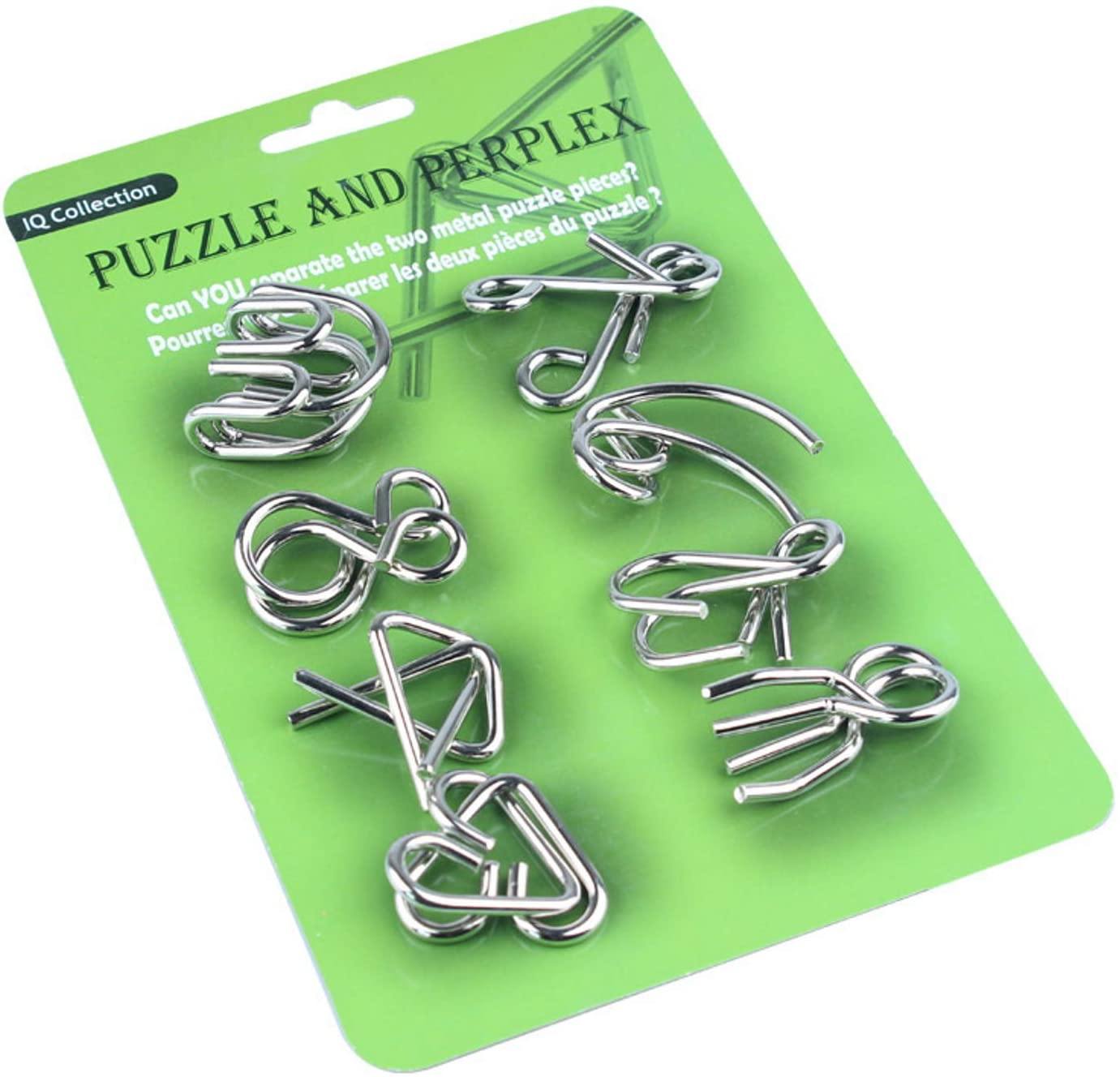 Metal Wire Puzzle Set of 8, 1 Green PackBrain Teaser IQ Test Iron Link Unlock Interlock
