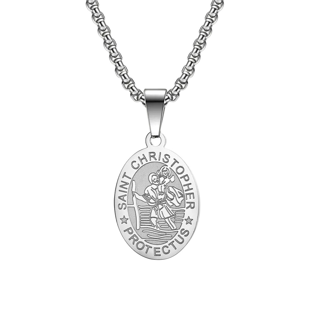 Saint Christopher Pendant Protection with Chain Stainless Steel Archangel
